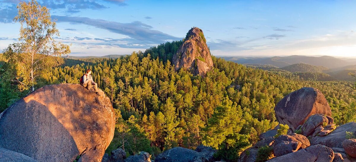 Государственный природный заповедник «Столбы» находится на северо-западной стороне отрогов Восточных Саян. Этому прекрасному памятнику российской природы уже более 90 лет. Природный парк и заповедник был создан недалеко от города Красноярска в 1925 году, чтобы сохранить неповторимую красоту и экологию этого сибирского уголка. Такое название заповедник получил благодаря сиенитовым скалам, которые напоминают очертания вертикально стоящих как столбы сказочных великанов, животных или других фантастических существ. Территория заповедника расположена между притоками Енисея реками Базаихой, Маной, Большой Слизневой. Такое расположение заповедника повлияло на уникальную природу и растительность природного парка и заповедника. Здесь можно увидеть деревья, растущие в среднегорной хвойной тайге – ель, пихту, кедр в верхнем поясе «Столбов», и лиственные светлохвойные леса – сосну, лиственницу, осину и березу – в нижнем поясе. К флоре заповедника относится 740 видов растений и 250 вид