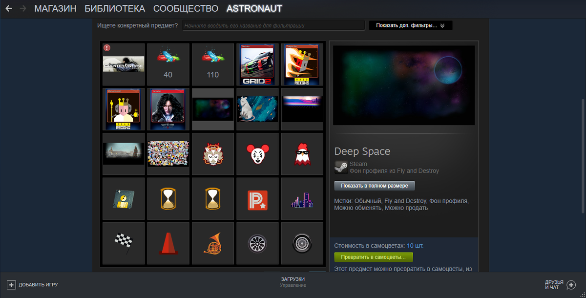 1.Получаем 10 уровень steam 2.Покупаем фон на торговой площадке steam 3.Заходим в свой инвентарь steam -Нажимаем на "показать в полном размере" -После чего нас перекидывает на изображение фона -Скопируйте URL и переходите на steam.design -После вставляйте URL в указанное поле -Затем нажимаем на "Change BG", а потом на "Download Images" -После заходи в скачанный архив rar,и распаковываем в любую папку -Далее мы заходим в иллюстрации steam -Нажимаем "загрузить иллюстрацию" -Вставляем часть фона и открываем код элемента>консоль и вписываем document.getElementsByName("image_width")[0].value = 999999;document.getElementsByName("image_height")[0].value = 1; и нажимаем Enter и так повторяем с правой частью (аватарку не надо!) -Затем заходи в редактирование профиля>витрины>витрины иллюстраций и вставляем иллюстрации (ОНИ БУДУТ В ВИДЕ ПОЛОСОЧЕК!) -Но после всё будет хорошо -Сохраняем изменения и заходим на свою страницу и смотрим что получилось