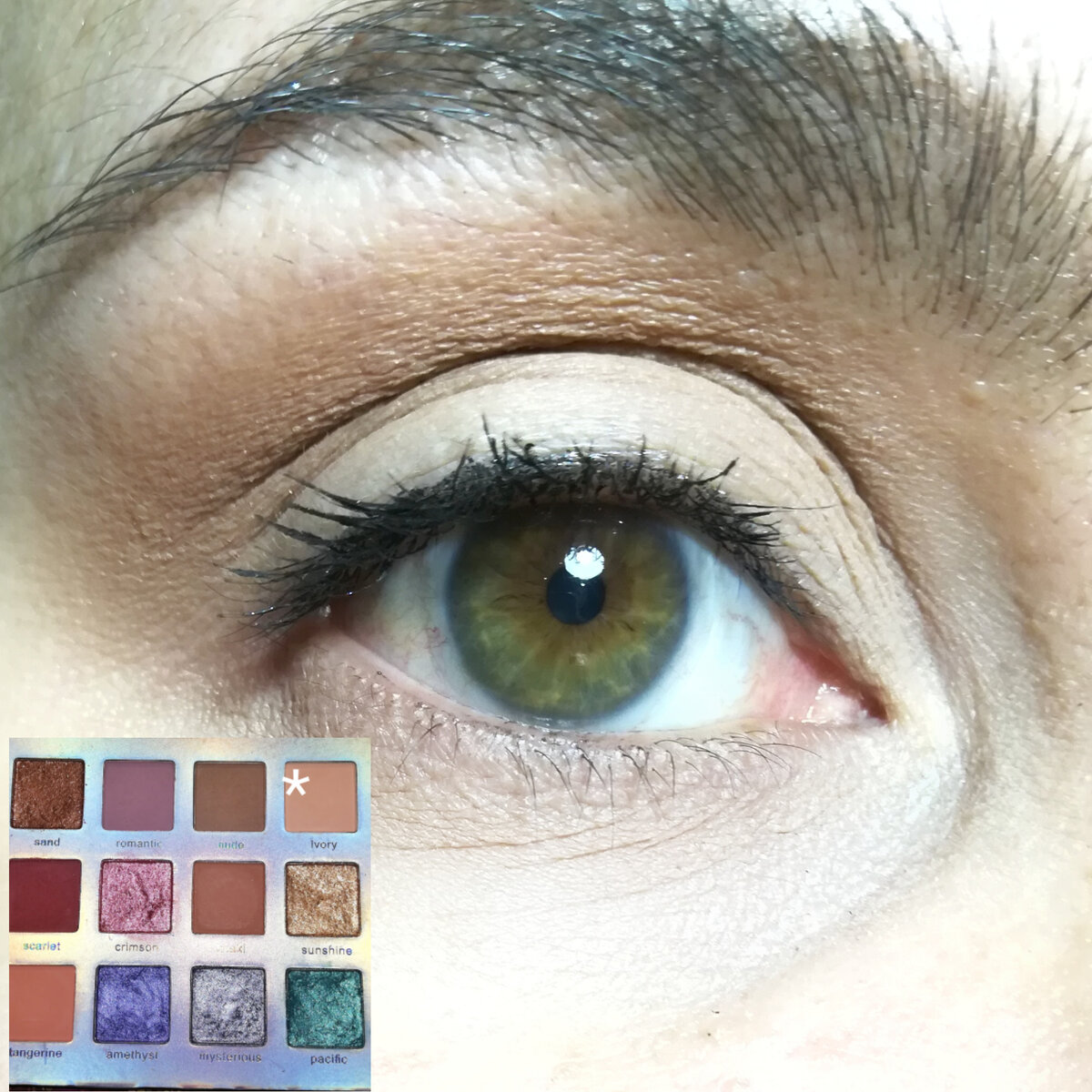 Сегодня у нас на повестке дня матовый макияж. Сложность данной техники в том, что матовые оттенки требует очень тщательной тушёвки. Вообще идеальная тушевка - это не когда у вас один цвет и вы его кистью размазываете и он из красного превращается в розовой. Некоторые тени так себя ведут, но это не входит в задачу теней. Из-за чего в палетках часто много похожих оттенков? Для того чтобы делать переход например из красного в розовый плавным, чтобы была тушевка. Мы наносим сначала красный встык наносим розовый и границу между ними аккуратно растушевываем, потом берём тон ещё светлее и ещё светлей. И так достигается градиент - разными оттенками, которые располагаются рядом с друг с другом, аккуратно между собой перемешиваются и соответственно уходит в кожу. Вернёмся к нашему макияжу. Оттенков мы будем использовать крайне немного, но придется хорошо помахать кистью. Берём какой-нибудь очень светлый оттенок теней либо пудру и наносим на всё веко, чтобы тени скользили по этому оттенку. Теперь