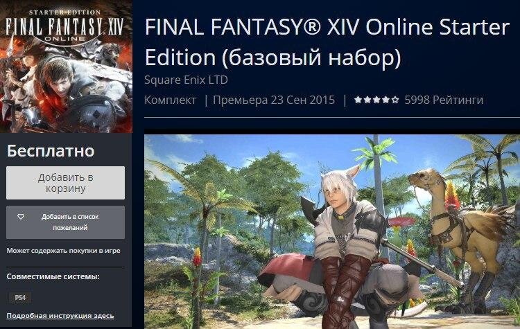 Бесплатно получаем игру FINAL FANTASY® XIV Online Starter Edition на Playstation