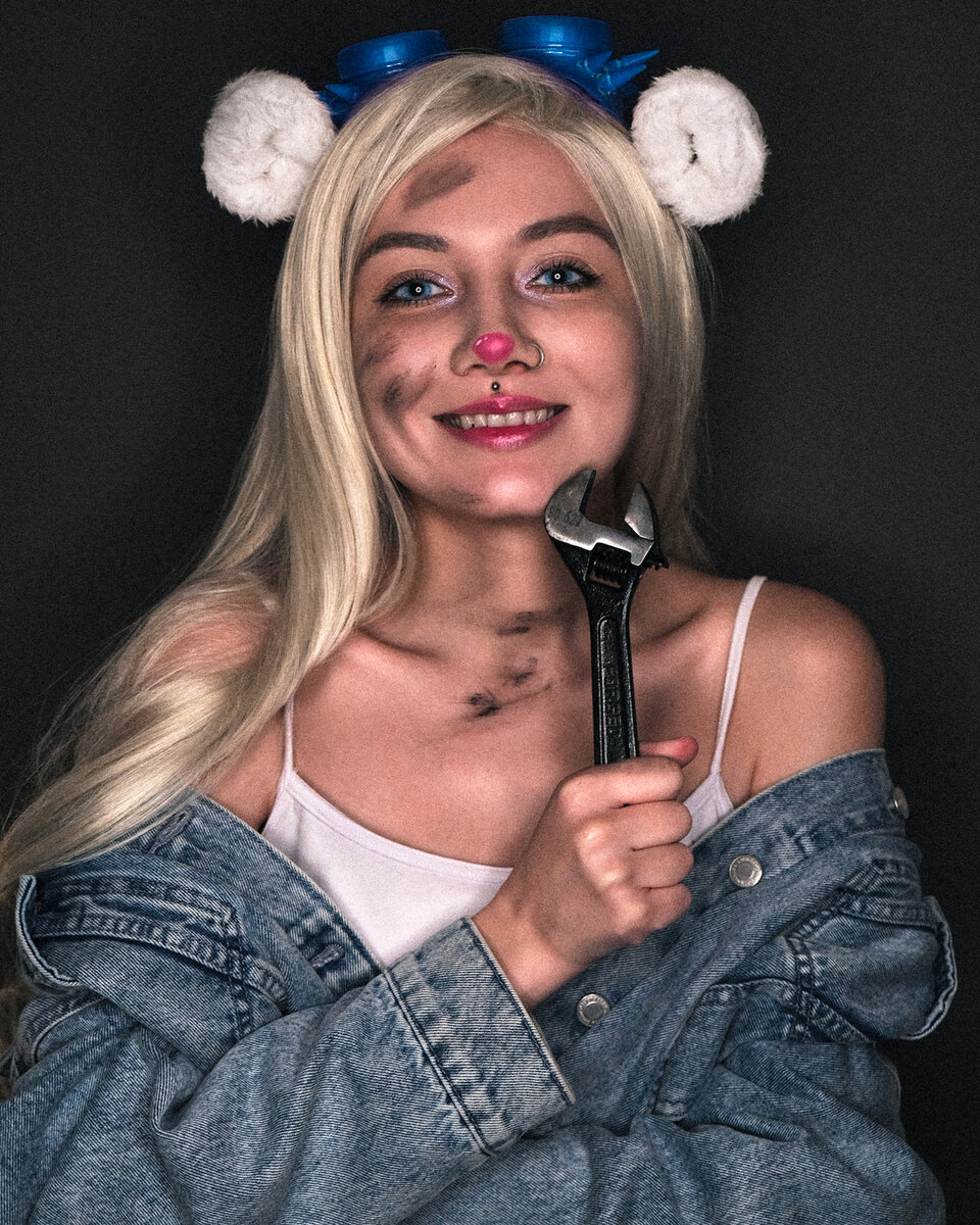 Кстати, я так и не поняла, какого цвета волосы у Гаечки. В мультфильме они вроде как жёлтые. Но посмотрев все косплеи в интернете, я увидела девушек и с ярко-рыжими волосами, и с желтоватыми, и с пепельным блондом. Сначала я даже решила делать её в рыжем парике, но потом передумала. Видимо, по задумке мультипликаторов, она блондинка, просто не пепельная, а натуральненькая.