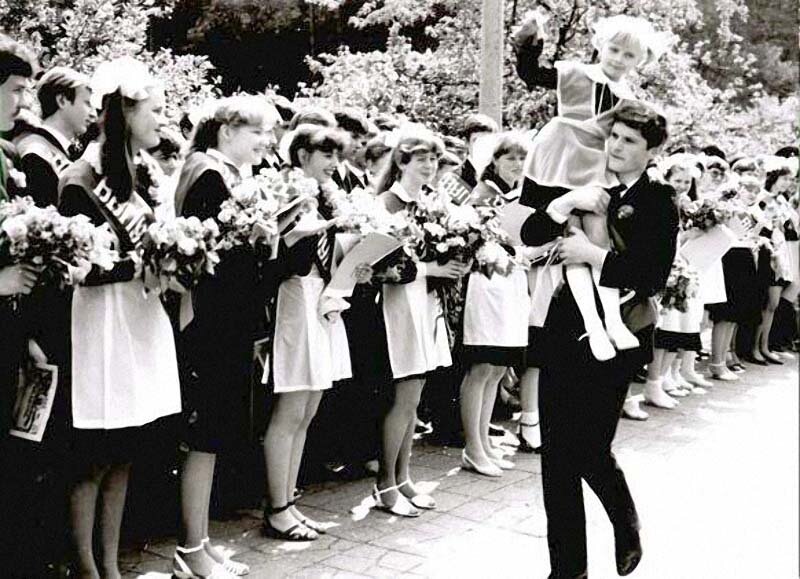 Поначалу особых торжеств в этот день не было,выпускников просто поздравляли и вручали аттесты. Всё начало развиваться в пятидесятых годах. Именно тогда родители хватались за голову и думали где взять столько денег? Многим семьям приходилось копить или занимать у родных и друзей,лишь бы собрать своего ребёнка на выпускной вечер. Что одевали выпускники? Девушки из семей с небольшим достатком приходили на выпуск из школы в простой форме — школьном платье с накрахмаленным белым фартуком. И никто не дразнил их за это, носить форму было почётно. Те же, кто умел шить, покупали красивые ткани и шили собственный фасон. С мальчиками всё было намного проще. Им достаточно было надеть новые начищенные туфли и пиджак с галстуком, чтобы казаться взрослее. На ногах выпускниц, как правило, красовались туфельки на каблуках. А утром уставшие девушки избавлялись от туфель и встречали рассвет босиком. Кстати, эта традиция встречи рассвета на выпускном сохранилась и до сих пор. Какие были жертвы для п