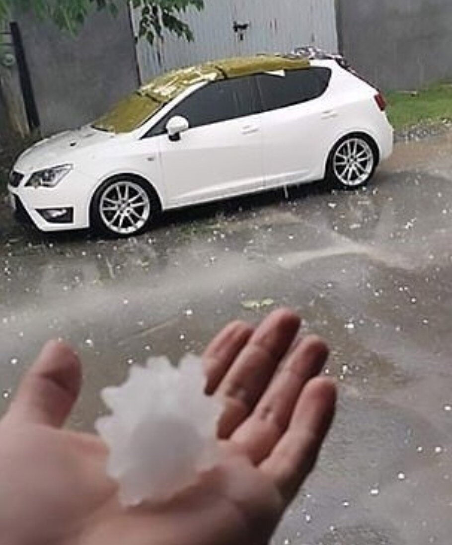Градины были невероятно крупными. А еще – увенчаны острыми “шипами”, напоминая своей формой всем уже знакомые “острые шары” коронавируса.