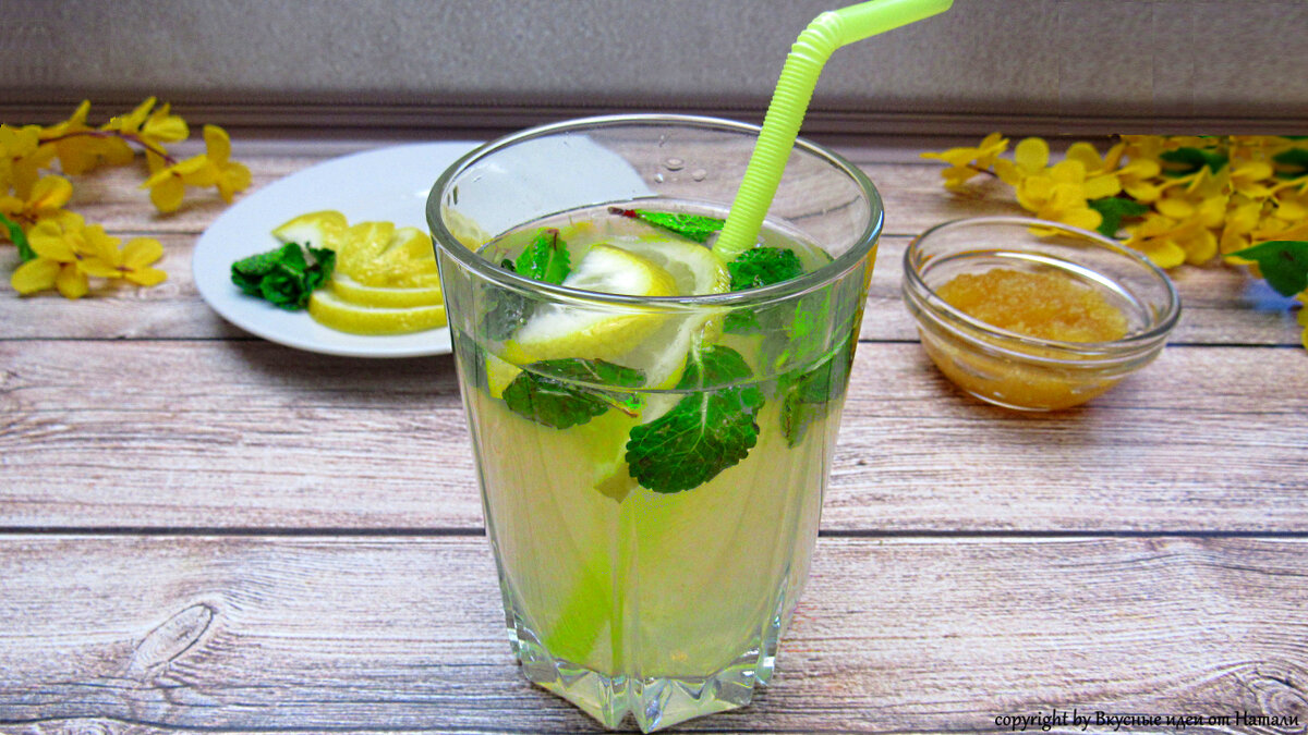 9. Готовому лимонаду дать настояться 1 час и можно подавать. Летом лучше подавать охлажденным, с кубиками льда, а вот в зимнее время лучше подавать теплым и с ложечкой мёда.