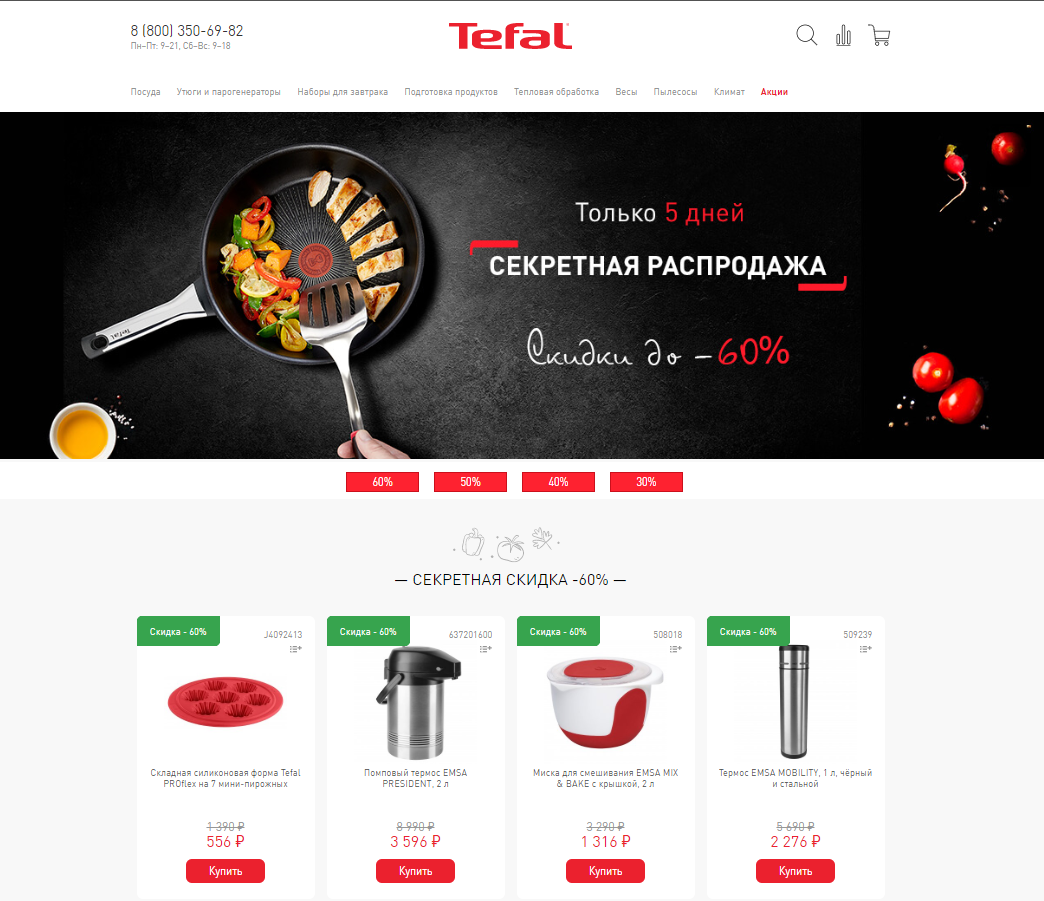 Tefal Shop - Секретная распродажа со скидками до 60%.