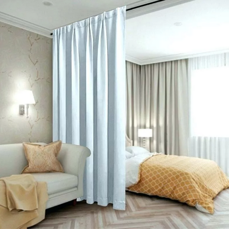 Всем доброго времени суток! Обычно шторы весят на оконные проёмы для красоты и защиты от света, но есть и нетрадиционные методы по использованию занавесок в интерьере. Зонирование квартиры. Такое решение является наиболее бюджетным и применяется для зонирования отдельного уголка. Такой способ наиболее актуален в квартире студии, кроме минимальных затрат вы в любой момент можете изменить стиль своего интерьера, всего лишь заменив "перегородку". Вместо межкомнатных дверей. Это оригинальное решение принимают многие дизайнеры, но есть некоторые нюансы которые нужно обязательно учесть, что бы не испортить общую картину. Обязательно штора на дверной проём должна быть до пола, соблюдайте высоту с занавесками висящими на окнах и соблюдайте цветовую гамму, чтобы не было дисбаланса. "Текстильный шкафчик" С помощью штор можно замаскировать открытую систему хранения и при надобности скрыть то, что не должны видеть гости. Не имеет значения, что там будет кровать, полки с вещами или гардеробная. Всё