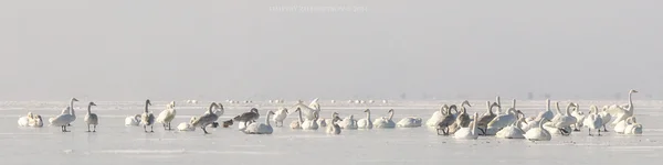 Прогуливаясь по льду навестил огромные скопления северных лебедей-кликунов, расположившихся посредине озера. Даже для них такие морозы были большим испытанием.