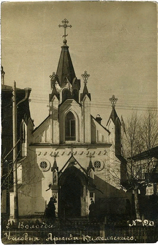 Здание часовни Арсения Комельского, которое расположено на Советском проспекте, было подворьем или представительством монастыря того же названия. Арсеньево-Комельский монастырь находился на территории современного Грязовецкого района.