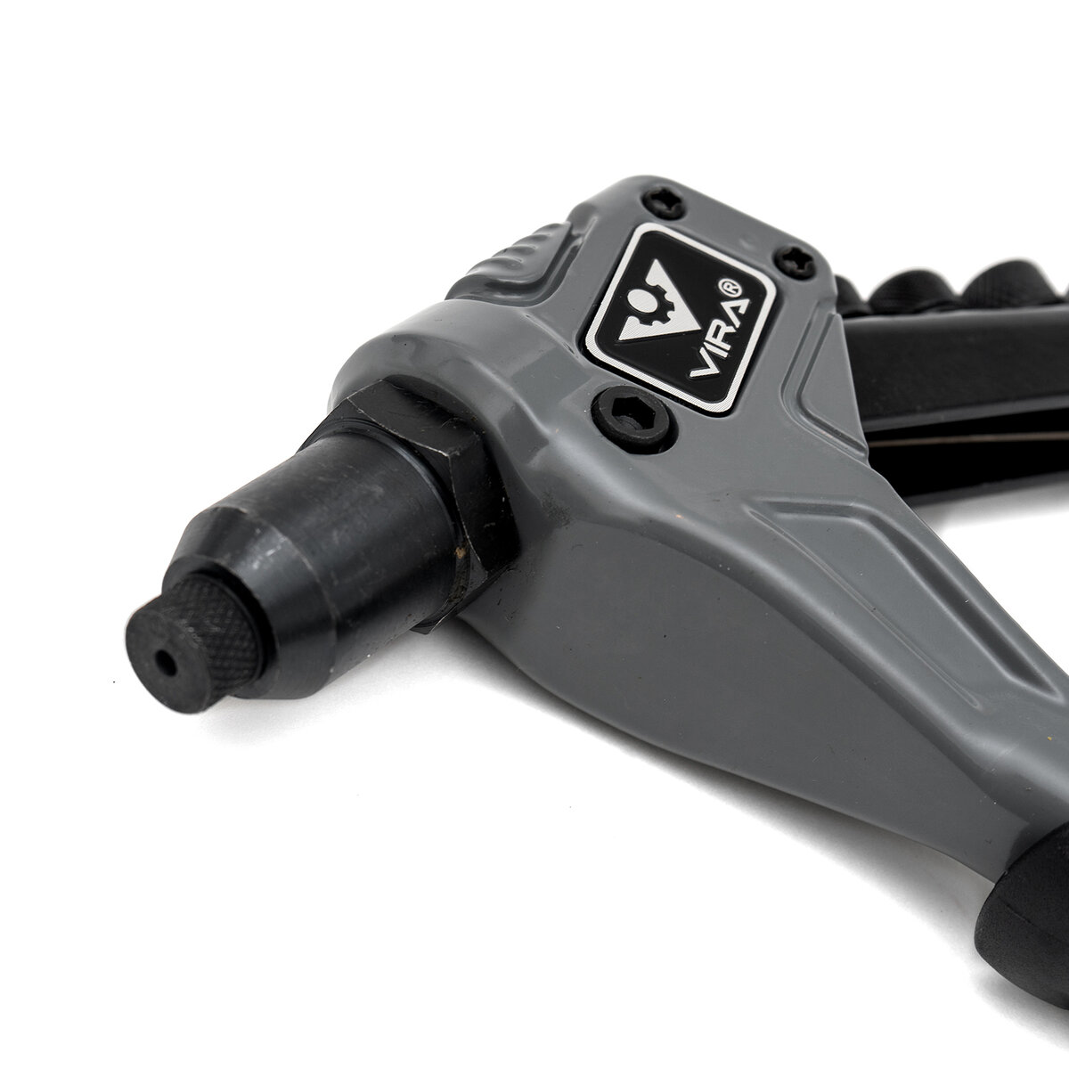 Купить заклепочник Vira Чтобы проще было пользоваться таким инструментом как заклепочник и это не вызывало трудностей, сначало необходимо подготовить все детали. Все детали аккуратно прикладываем и выполняем разметку. Надеваем защитные руковицы и делаем отверстие(не превышающее диаметр заклепки на 2мм) . Аккуратно вставьте крепеж в инструмент, а шляпку поместите в сквозное отверстие. Наденьте рабочую головку клепальника и нажмите на ручке. Благодаря такому движению детали будут прочно соединено. Необходимо следовать простым рекомендациям. В наше время технология клепания стала доступной каждому и занимает немного времени. Этому помогает заклепочник - удобный инструмент, который инструмент упрощающий фиксацию металлических элементов.