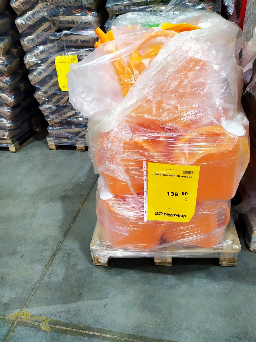 Закончив ночную смену я поехал домой, решив по пути заехать в "Светофор" и купить товаров по своему списку.Заехав с тележкой в торговый зал заметил на полках новое и интересное поступление товара.И в этом обзоре хочу предложить вам к просмотру, что новенького на мой взгляд появилось на полках магазина "Светофор". Вновь завезли лейки садовые оранжевого цвета на 10 литров, которые пользуются просто огромной популярностью и раскупаются очень быстро.Цена 140 рублей. Универсальный столик подставка для завтрака в постель.Цена 160 рублей. Кухонный стол на хромированных ножках с белой столешницей, размером 60/100 см.Цена 1563 рубля.К сожалению собранной модели не было, завезли повторно буквально вчера. Набор ножей универсальный из 5 штук.Цена 270 рублей. Утеплённая резиновая дачная обувь.Предлагается 2 пары за 120 рублей.Ну очень дёшево, я таких низких цен просто не видел.Выходит, что пара стоит всего 60 рублей. Кувшин с цветной крышкой объёмом 1,7 литра, для воды и напитков.Цена 100 рублей. Д