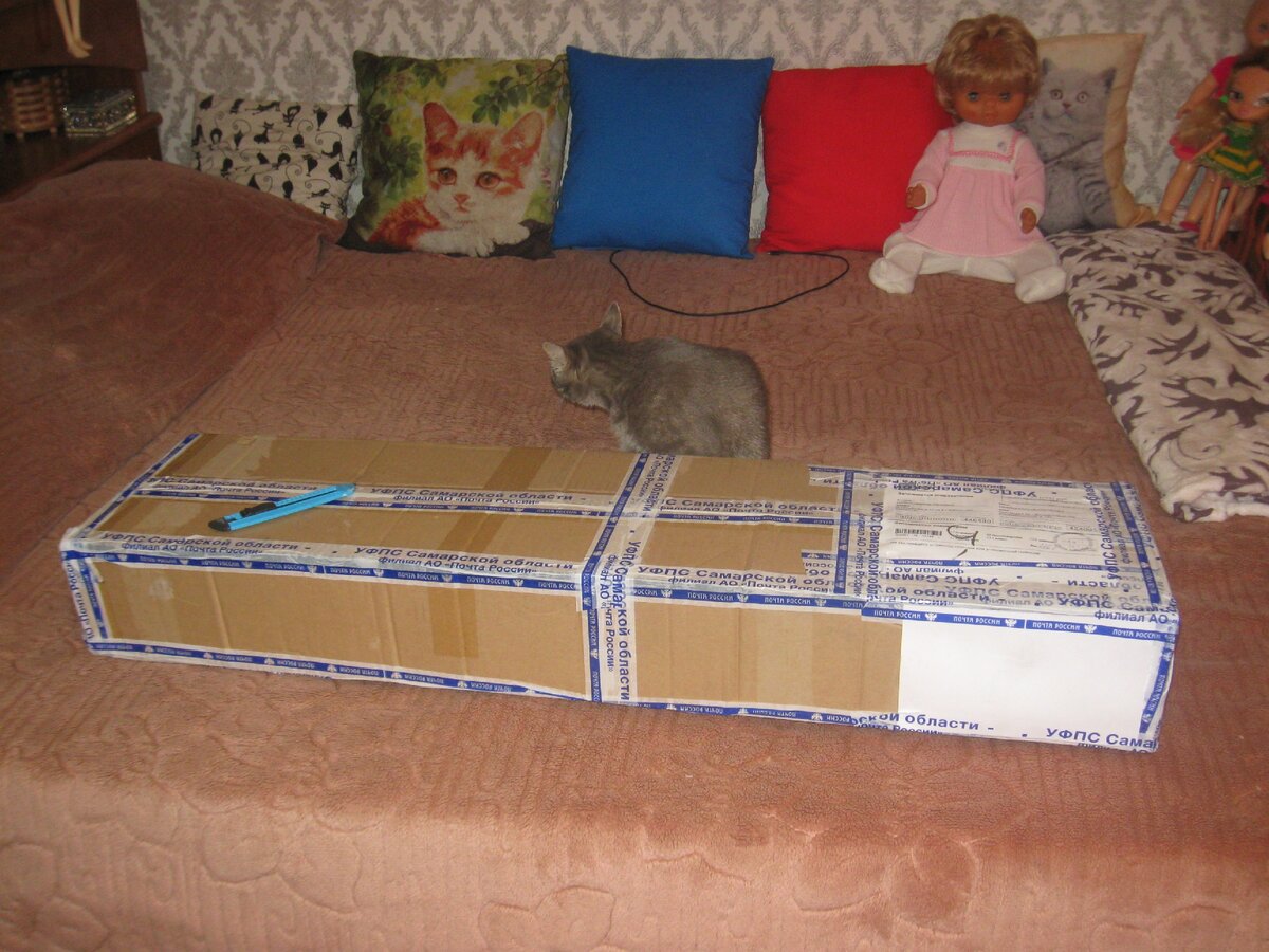 Тетеньки на почте посмеялись вручая мне коробку высотой чуть больше метра. При моих 1м 60см, я смотрелась с ней, наверное, интересно. Да еще и в маское. Она не дала увидеть им моей сияющей физиономии) Придя домой, измерила коробку - 1м 04см