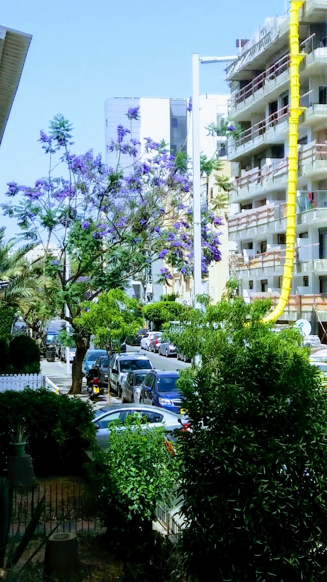 Весна в Израиле не ушла на карантин. Украсила города буйным цветением. Жаль только люди пропустили обилие цвета, красоты сидя дома на карантине. Хотя....Из окна у нас видно дерево жакаранду. Ещё его зовут фиалковое дерево. Очень на сирень похоже по цвету, скученности соцветий. Только они больше, чем у сирени. Имеют форму колокольчиков, а цвет необычно ярко-сиреневый. Пока цветет и радует жильцов, которые выглядывают из окон глотнуть воздуха свободы и глянуть на грозди жакаранды. И как то на душе становится радостней когда смотришь на это цветение. Вроде жизнь продолжается, карантин закончится когда-нибудь и все будет хорошо. Лишь бы все были здоровы!