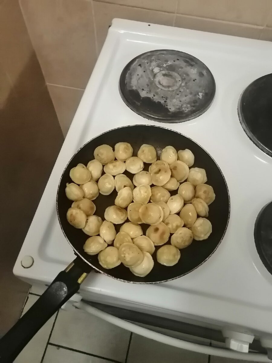 Для начала жарим пелемени до корочки будте внимательнее, перемешивайте чаще что бы не пригорели. После того как они подзолотились добавляем туда кетчуп. и не прекращая перемешивать доводим до готовности и вуаля все готово, приятного аппетита. спасибо за просмотр.