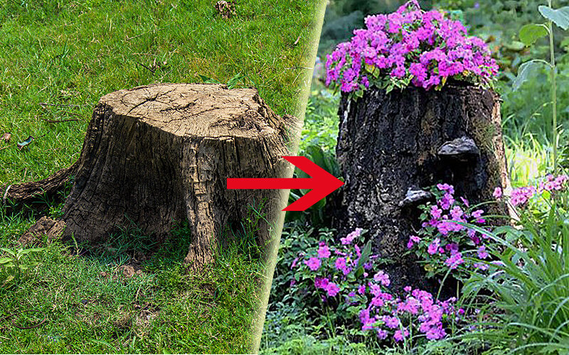 А почему бы не воспользоваться сложившейся ситуацией, и не превратить пень в эффектный элемент ландшафтного дизайна?