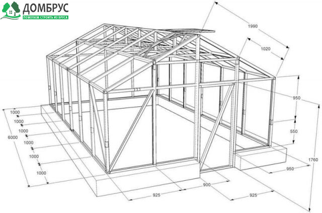 - дабы рама не расшаталась при сборке, стойки следует дополнительно усилить укосами, что должны быть удалены после того, как теплица будет полностью построена;