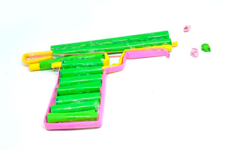 - Скатайте пульки из бумаги, зарядите пистолет и выстрелите.