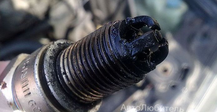 В некоторых случаях нагар, который естественным образом появляется в камере сгорания, может на высоких оборотах двигателя отрываться от поршня и прилипать к изолятору свечи. Следствием этого будут пропуски в работе соответствующего цилиндра. Двигатель при этом будет “троить”. Это наиболее безобидная ситуация, почему чернеют свечи зажигания. Устранить ее можно просто почистив их поверхность или заменив на новые.