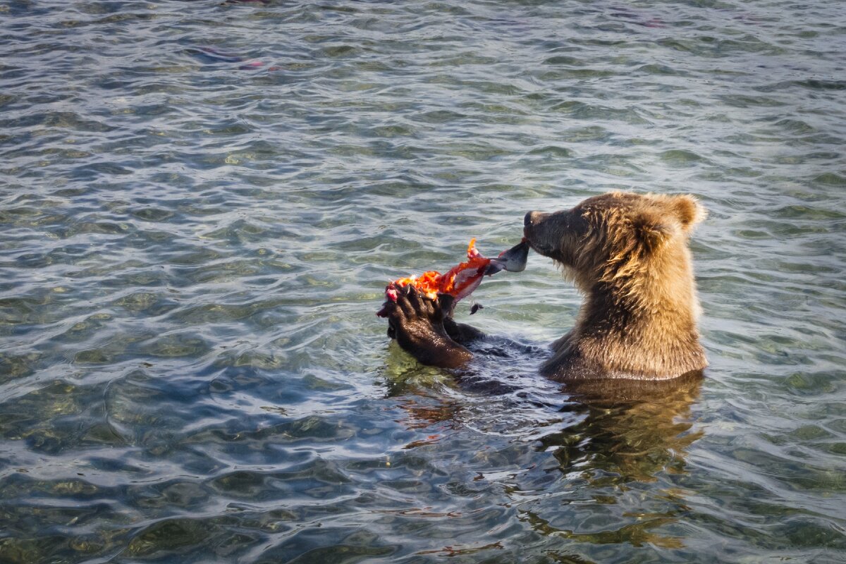 На самом же деле они невероятно быстры и проворны. Если бы решили напасть, ничего бы не помогло, и машина бы не спасла. И ведь на поляне, кроме нас, были и другие люди. Сидели в своих джипах и наблюдали за мишками. Такой вот экстремальный курильский досуг. Как мы в кино или театр ходим, на Итурупе точно так же, ездят на косолапых смотреть.