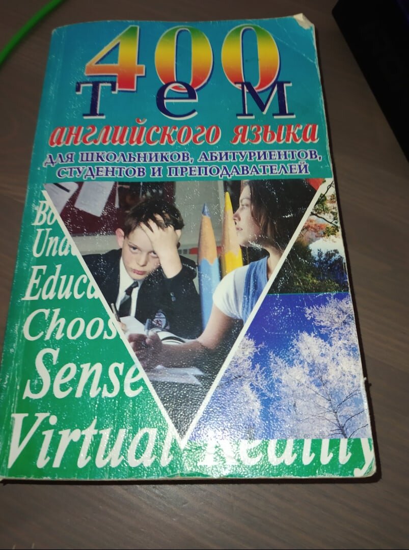 Привет, сегодня хочу рассказать об одной книге которая меня не раз выручала на занятиях английского, да и сегодня спасает. Вообщем, приступим. Книга эта называется так: 400 Тем по английскому языку. Как видно, книга эта уже не новая, я бы сказал это уже некий раритет 2002 года. Я не раз списывал темы и топики из этой книжки, ведь наполнение действительно богатое, в ней чего только нет. от слов: о темы "О себе" до темы "религия в Великобритании"или темы "политико-административное устройство США". Каждый раз, когда мне нужна та или иная тема, я сначала обращаюсь к книге, а затем, если ёё там нет, то уже к интернету Ну а на этом все. Поэтому попрошу, если не затруднит то подпишись и поставь лайк)
