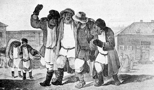 Великий реформатор Петр I на своих «всепьянейших ассамблеях» вколачивал привычку к бухлу самыми злыми методами. Например, за отказ выпить полный русской водки кубок «Большого Орла» емкостью в 1,5 литра запросто можно было поплатиться имением и попасть в Сибирь. Именно он запустил в народ известную поговорку: «Султану не верь, бабе не верь, непьющему не верь». Утратить доверие никому не хотелось, и кабаки расползлись по Москве, как тараканы. Москвичи пили до одури и до изумления, пропивали все, включая одежду, нательные кресты, собственную свободу и даже свободу жен и детей, подписывая за лишнюю чарку кабальную холопскую запись. Благо было где — в каждой полицейской части города было как минимум по одному крупному кабаку. Навскидку — «Татьянка» в Мясницкой части, «Ленивка», «Веселуха» и «Раушка» в Пятницкой, «Щипок» в Серпуховской, «Варгуниха» в Сретенской, «Разгуляй» в Басманной… А если учесть, что кабаки строили еще и возле каждой бани, то можно поверить Прыжову, утверждавшему, что к 1863 г. в Москве было не меньше 3,5 тыс. кабаков и распивочных. Царское правительство отдало торговлю спиртным на откуп жидам. Подавляющее большинство питейных заведений в России принадлежало пархатому жулью. При явном попустительстве церкви, жиды доводили крестьян до полнейшего разорения, приучив к водке до такой степени, что это пристрастие стало нашим национальным бедствием. Ни в чем русский мужик меры не знает: «он до смерти работает, до полусмерти пьет».