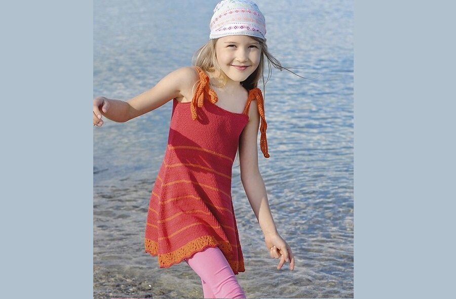 Близится лето, и несмотря на затянувшийся карантин хочется верить, что деткам все-таки удастся провести каникулы по-человечески. А для поднятия настроения наших девочек, их настроя на позитивный лад - нет ничего лучше новой, красивой, летней обновки, связанной мамиными ручками. Особенно, когда все магазины закрыты. И вот, дорогие рукодельницы, ловите несколько схем вязания моделей для девочек. Надеемся, что для каждой из них найдется своя мама с дочкой. Внимание! В этой статье размещены только фото моделей, схему вязания для каждой из них можно бесплатно скачать на нашем сайте, перейдя по ссылке под фотографией. Итак, поехали! 1. Красный сарафан на бретелях спицами. Ярко и со вкусом. Схему и описание для вязания найдете здесь. 2. Платье с ажурными воланами и заколка. Модель вяжется и спицами и крючком. Результат - красивый наряд для прогулок. Схему вязания скачивайте на этой странице сайта. 3. Голубой сарафан с зигзагами Миссони. Достаточно сложная работа, поэтому, рекомендуем опытны