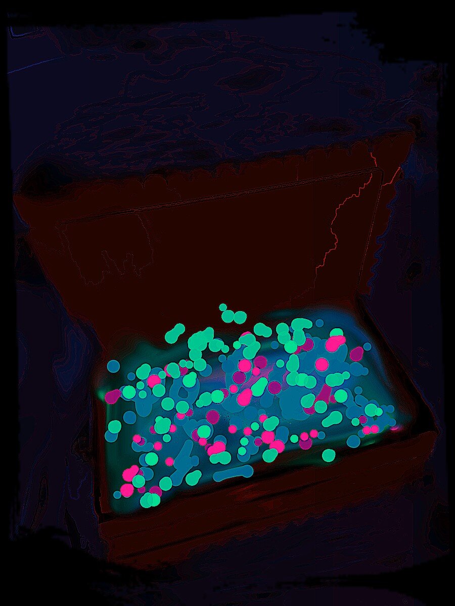 Сон был такой. Я ночью сижу на краю леса, возле кладбища, и открываю сундук со светящимися в темноте синими камнями, самоцветами, волшебной красоты. И мне думается,что самоцветы в сундучке - это мой умерший дедушка. Возраст мой тогда был примерно 3-4 года. И помню перед этим я размышляла о том, что раз у меня есть бабушка, то должен быть и дедушка. И я спросила у кого-то из взрослых, где же мой дедушка. Мне рассказали, что он умер и его похоронили на кладбище, а похоронить - это значит закопать в могилу. Слова эти для меня были новые и я их по-детски обрела в образы. И вот такой сон увиделся . Мне потом ещё какое-то время казалось, что этот сундучок с дедушкой где-то стоит, и искала его под кроватью, в шкафах. Видимо, в таком возрасте сон и реальность для детей находятся в одной плоскости.