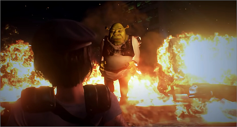 Поскольку серия "Шрек" со временем сильно постарела (за исключением изящного "Шрек-2"), люди поняли, что эта серия полна потенциала мемов. Учитывая, что первый фильм сам по себе - это просто великолепная цепочка мемов, склеенных вместе, которые уже были устаревшими,во время премьеры; это задумка отлично подходит. Люди уже много лет пытаются заполучить Шрека в Super Smash Bros., но теперь вы можете добавить его, чтобы получить другую игру с помощью моддинга. Хотя Mr. X mods были популярны в недавнем ремейке Resident Evil 2, эта практика вернулась с появлением переиздания Resident Evil 3 и вездесущей Немезиды. Созданный MrMarco1003, довольно резкий и сухой: он меняет Немезиду на Шрека. Вы можете посмотреть на мод в действии в видео ниже,которое демонстрирует простую замену модели персонажа. Тематически это вроде как подходит. Если бы злая фармацевтическая компания выбрала одного вымышленного персонажа в качестве модели неукротимого супероружия, то это, вероятно, был бы Шрек.