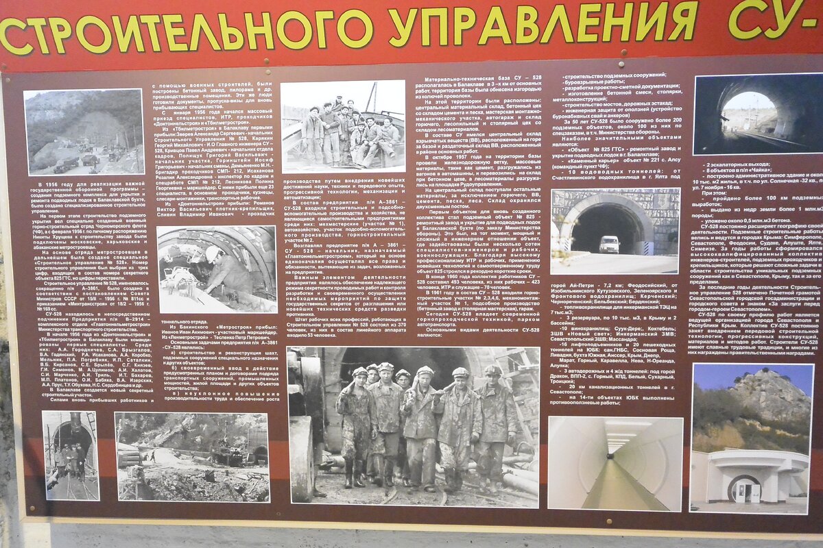 Объект представляет собой сооружение противоатомной защиты первой категории (защита от прямого попадания атомной бомбы мощностью 100 кт), включающее в себя комбинированный подземный водный канал с сухим доком, цеха для ремонта, склады ГСМ, минно-торпедную часть. Располагается в горе Таврос, по обеим сторонам которой находятся два выхода. Со стороны бухты — вход в канал (штольню). В случае необходимости он перекрывался батопортом, вес которого достигал 150 тонн. Для выхода в открытое море был оборудован выход на северной стороне горы, который также перекрывался батопортом. Оба отверстия в скале были искусно закрыты маскировочными приспособлениями и сетями. Объект 825 ГТС был предназначен для укрытия, ремонта и обслуживания подводных лодок 613-го и 633-го проектов, а также для хранения боеприпасов, предназначенных для этих подлодок. В канале (длина 602 метра) объекта могло разместиться 7 подлодок указанных проектов. Глубина канала достигает 8 м, ширина колеблется от 12 до 22 м. Общая пл