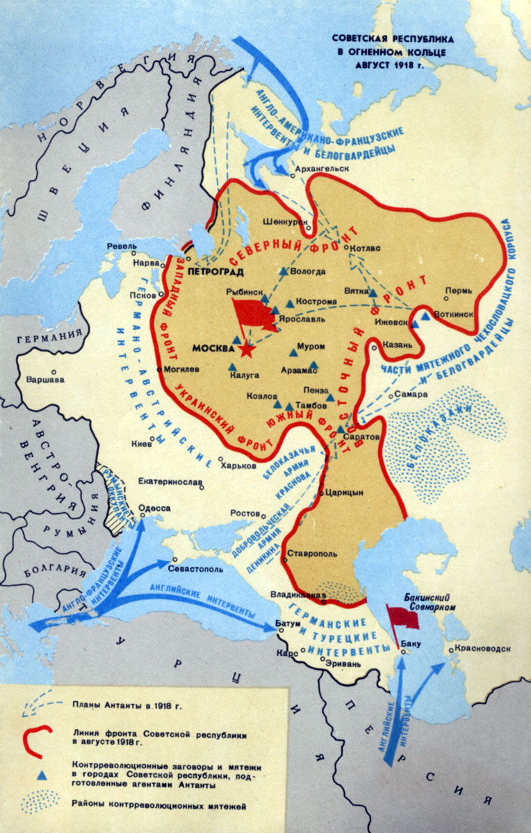Наконец, нужно сказать о географии. Большевики, которые опирались на широкие рабочие массы и были наиболее популярны в Москве и Петрограде, заняли промышленный центр страны. Несмотря на то, что такое положение заключило их в кольцо фронтов, оно имело неоспоримые преимущества. У них банально было больше мобилизационного ресурса, больше промышленных мощностей (что нивелировалось поддержкой белых вооружением иностранных государств). И, что очень важно, у большевиков была развитая сеть железных дорог с хорошей (относительно жд под контролем белых) пропускной способностью.