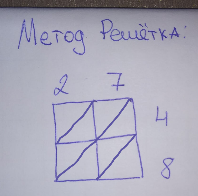 Здравствуйте дамы и господа, рад приветствовать вас на познавательном канале Учёба - Амёба. Сегодня вы научитесь умножать большие числа без калькулятора, и без привычного умножения в столбик. Если вы отточите этот навык до мастерства, то сможете гораздо быстрее справляться с расчетами. Итак, метод умножения называется "Решётка". Придуман он очень давно, но почему-то остается неизвестным для большинства школьников и взрослых. Приступим непосредственно к методу. Предположим нам нужно перемножить числа 27 и 48, засекаем секундомер и умножаем в столбик, чтобы сравнить нашу скорость решения с методом решетки. У меня вышло это сделать за: 15 секунд. Ответ 1296. Теперь разберем наш метод, сначала я расскажу, что он из себя представляет: Чертим такую схему: каждой цифре по столбцу/строке и штрихуем Далее умножаем все подряд и вписываем цифры так, как показано: Складываем числа в диагоналях снизу вверх, если получается двузначное, то единицу переносим в разряд выше: Составляем число сверху в