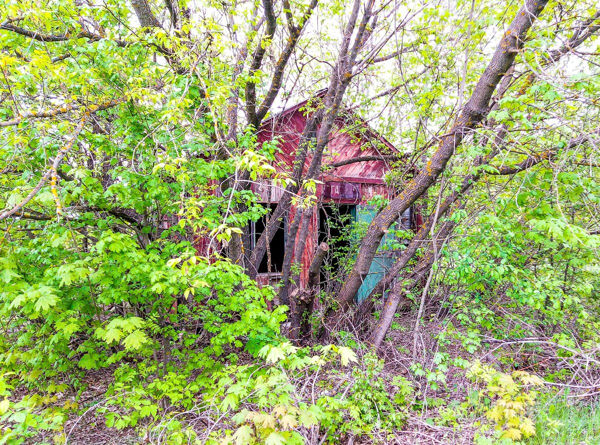 Мы вместе с блогером Александром с канала "Мир прошлого" продолжали наш поход по глухой деревне. Неожиданно в зарослях заметили небольшое деревянное здание. Подошли поближе, чтобы его осмотреть. Мы сначала подумали, что это какой-нибудь заброшенной сарай. Но каково же было наше удивление, когда над дверью, на уже проржавевшей металлической табличке, мы увидели вывеску "Магазин". Кстати, магазин этот был от Центрсоюза. Мы в какой то деревне уже раньше встречали заброшенный магазин, он тоже был от этой же организации. Мы зашли в здание и увидели там почти разрушенную печку. Все металлические части с нее поснимали охотники за металлом. Дымоход у печки тоже был разломан. И дымовая труба отсутствовала. Возможно, она была металлическая, и ее тоже утащили и сдали на металлолом. Стены внутри магазина были деревянные и частично обшитые ДСП. Некоторые листы ДСП были отодраны от стен и лежали на полу. Не понятно, кто и зачем это сделал. А на полу внутри здания мы увидели какие-то соты. Возможно,
