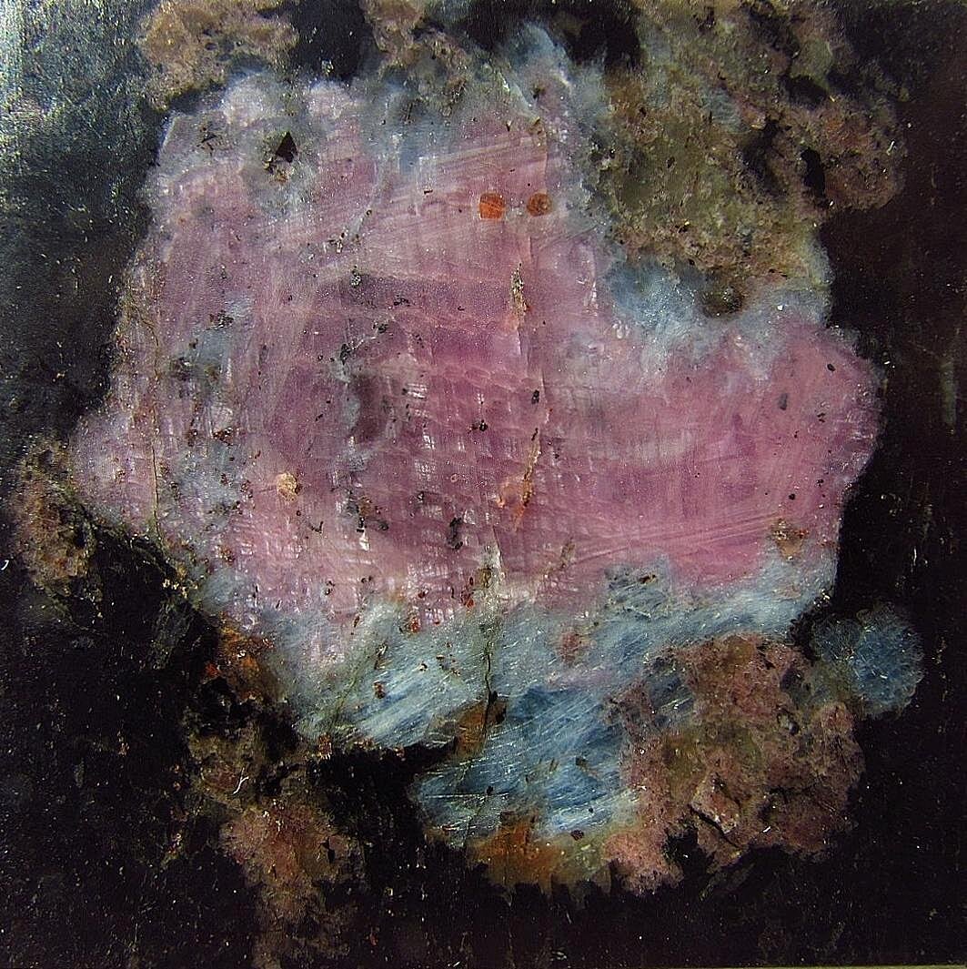 Произошел частичный распад и замещение минералов, кристаллизовавшихся при более высоких температурах и давлениях (граната, корунда).