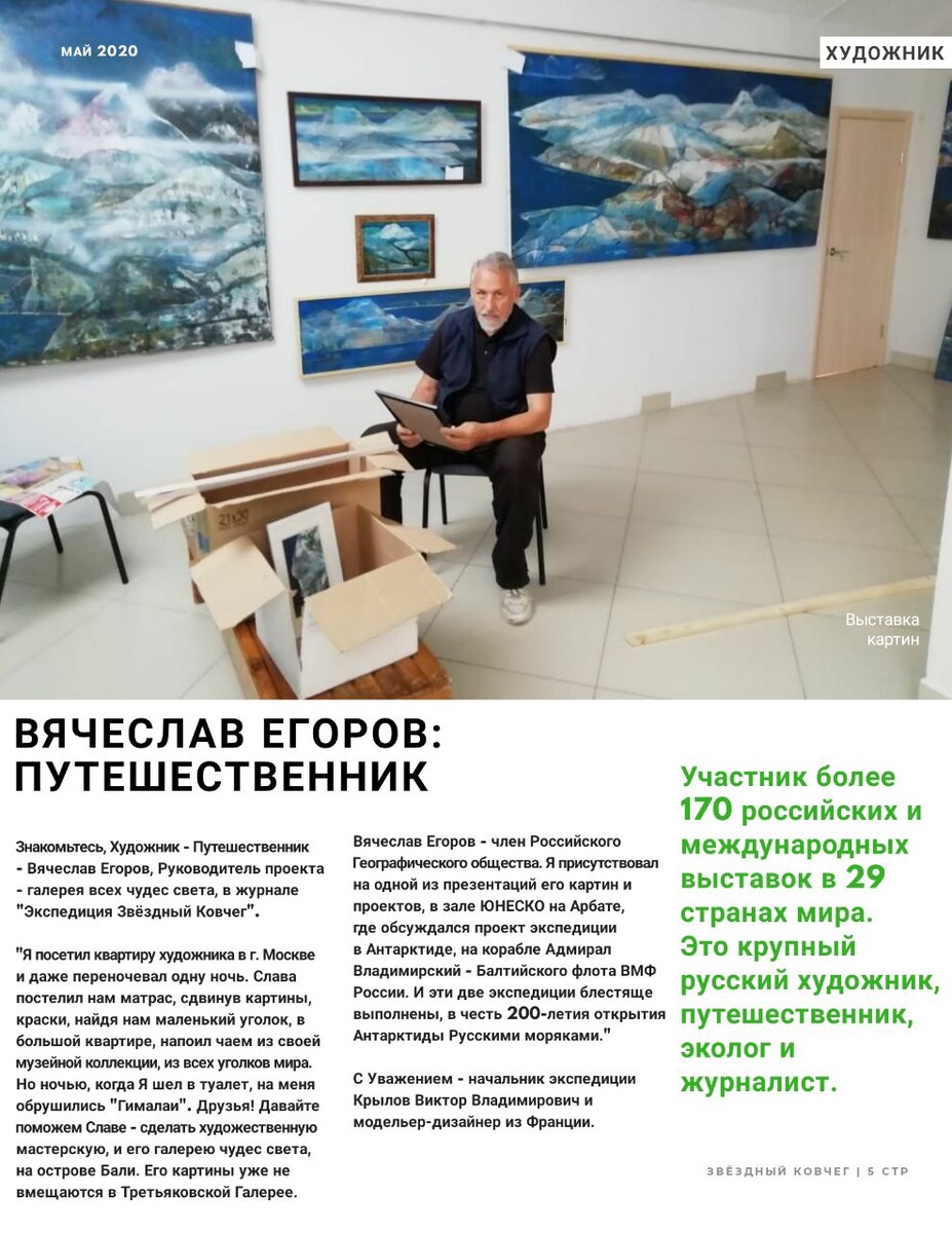 Знакомьтесь, Художник - Путешественник - Вячеслав Егоров, Руководитель проекта - галерея всех чудес света, в журнале "Экспедиция Звёздный Ковчег".