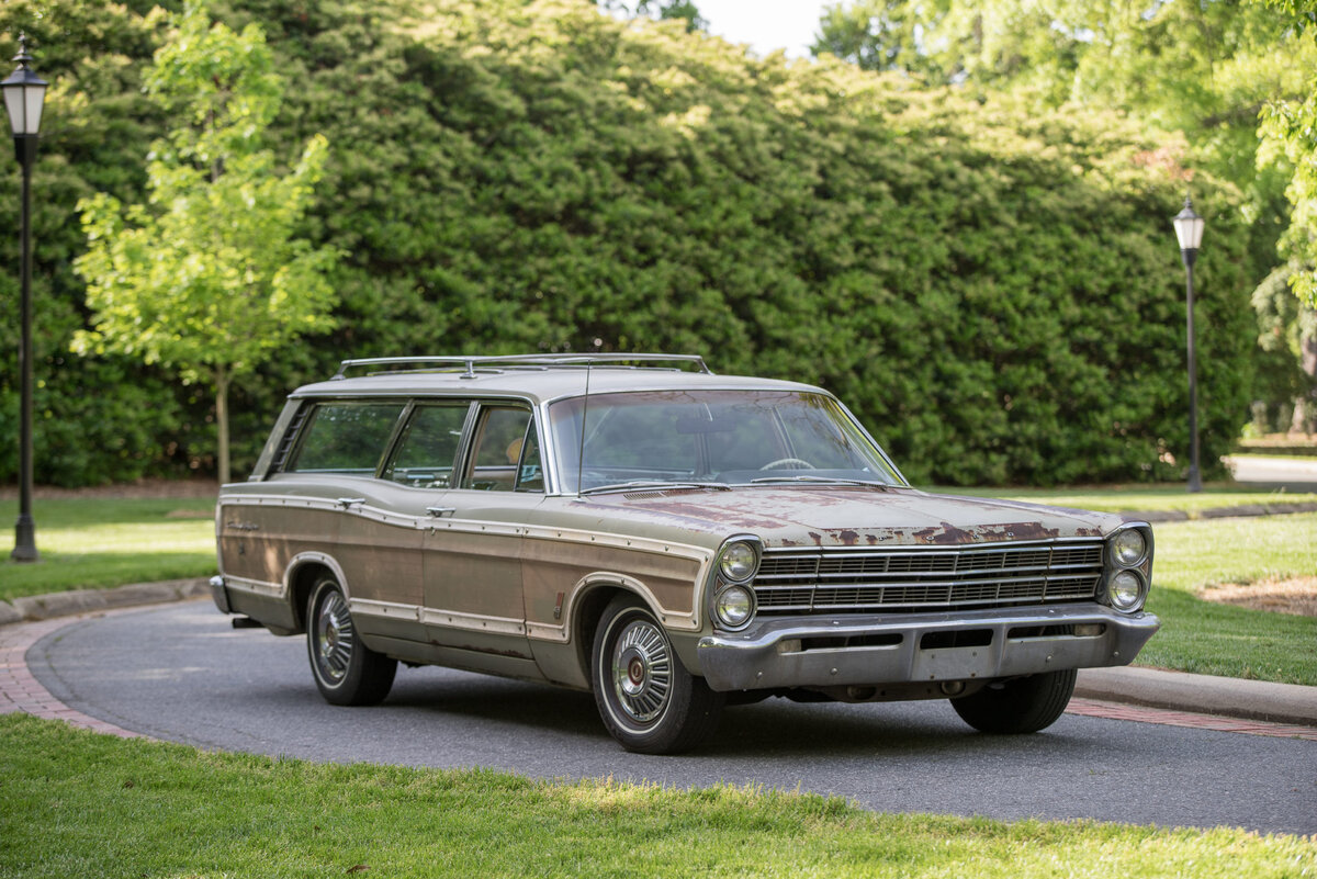 Раньше времена были, конечно, другими. Попробуйте сейчас заказать у массового производителя какую-то особую комбинацию агрегатов, Вас пошлют куда подальше! Вот комплектации, вот список опций: вариантов много, но мощный мотор доступен только вот с этой коробкой и массой доп. оборудования… А раньше было проще: некий американский гражданин написал письмо лично руководителю Ford Ли Якокке с просьбой собрать эксклюзивный вариант универсала Ford Country Squire. Он не просил редкий цвет или необычный интерьер, ему был нужен 7-литровый V8 под капотом и механическая коробка передач. И, черт возьми, такую машину сделали! Есть мнение, что представленный на фотографиях Ford Country Squire 1967 года выпуска, единственный покинул завод Ford с двигателем V8 объемом 428 кубических дюймов (7,01 л.) и четырехступенчатой «механикой». Также были заказаны более спортивные передние кресла (да, такие в Америке 60-х были спортивные ковши - на фото ниже) и иная центральная консоль. Двигатель Ford Q-code 428 об