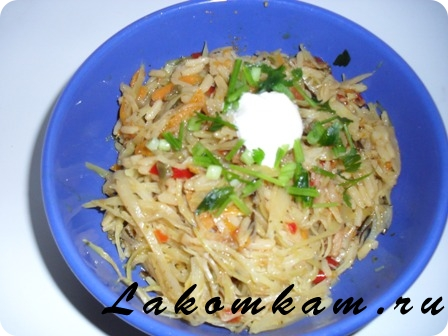 Блюдо из овощей «Овощное ассорти». Приготовление. Капусту нашинковать.
