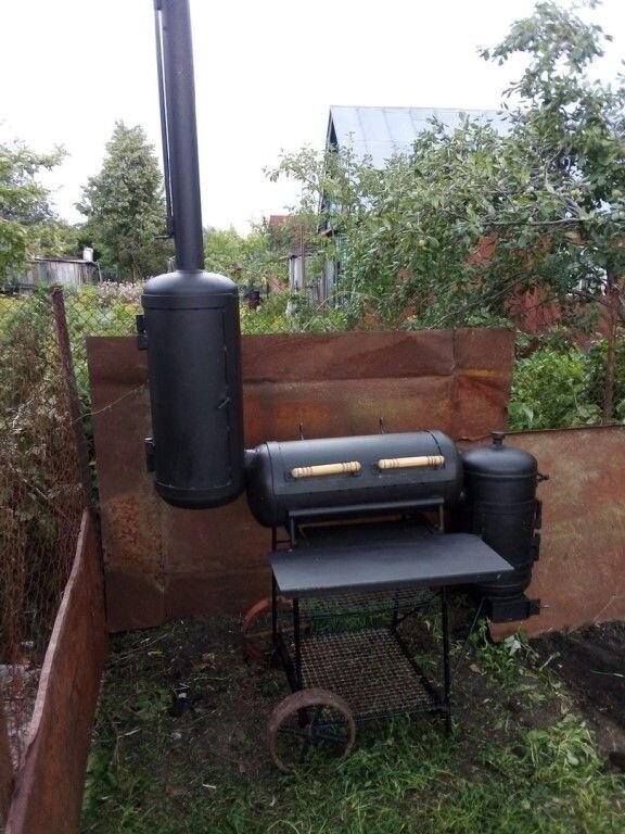 Казан-мангал-коптильня из баллонов. Окрашено термоэмалью. В планах украсить декором, добавить термодатчик.