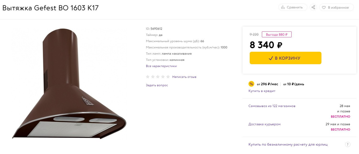 В Связном вытяжка Gefest ВО 1603 К17 за 8089₽. В других магазинах стоимость от 9200₽. Максимальная производительность 1000 м³/ч, ширина встраивания 60 см, 2 лампы освещения. В корзине применяй промокод: SVZSALE3
