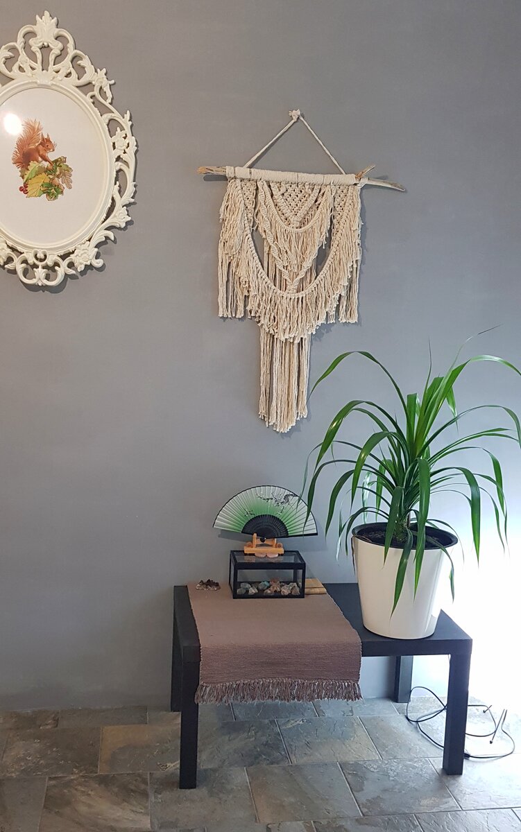 Кстати, у меня в комнате две стены серые и две стены белые. И я до сих пор считаю это своим лучшим решением. Белая стена напротив окна делает комнату светлее, а на сером фоне хороши мои макраме и вышивка.