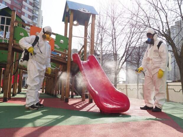 В пресс-службе уточнили, что сотрудники управляющих компаний обрабатывают специальными обеззараживающими растворами детские и спортивные площадки, малые игровые формы, детские качели во дворах многоквартирных домов.