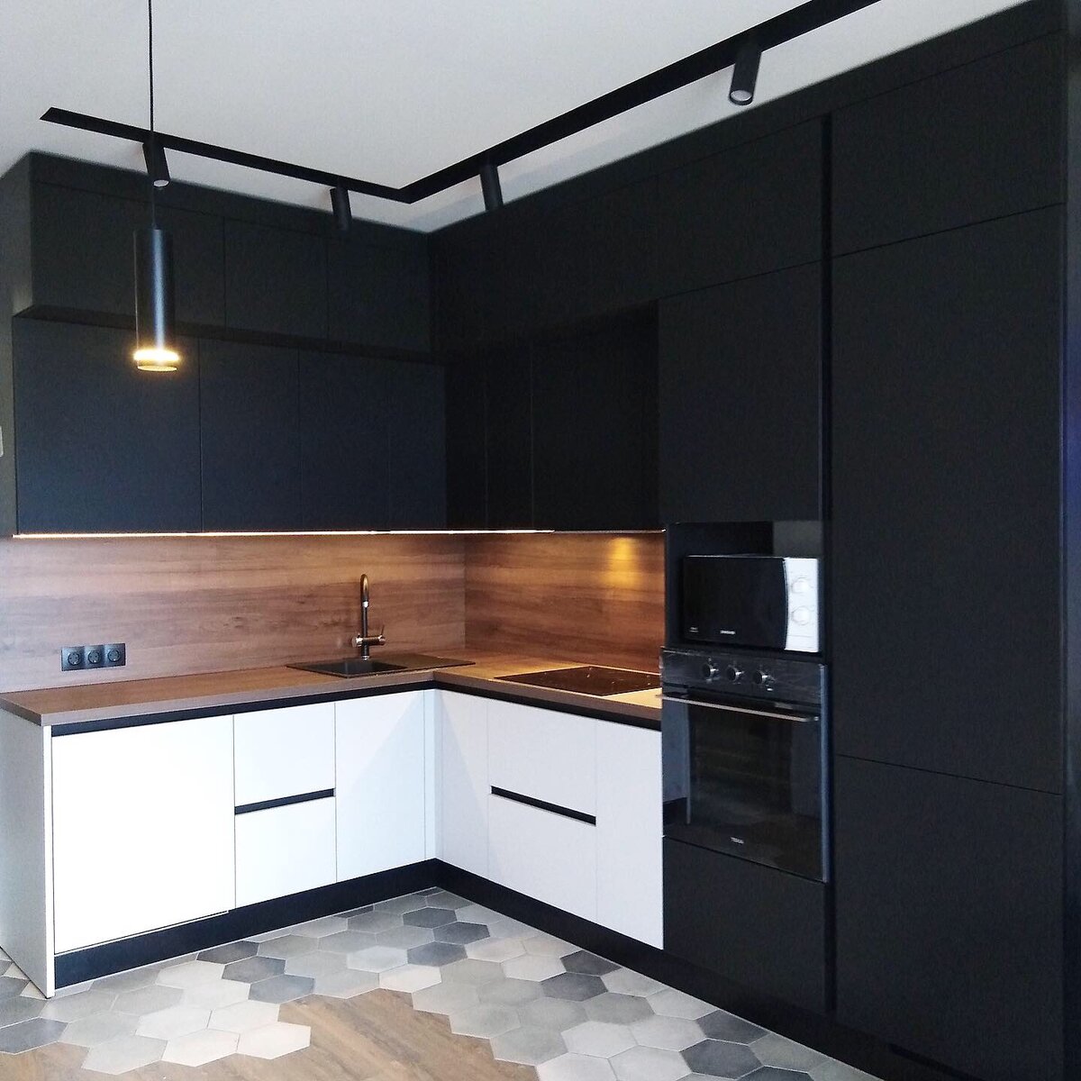 Не хотите видеть трубы внутри шкафов, можно спрятать все коммуникации в стену, предусмотрев данный вариант на этапе проекта. Это дороже, но стена будет ровная и не надо учитывать каждый изгиб труб. Важно правильно спланировать все выводы под розетки. Если их недостаточно, то переделка будет дорогой. Продумайте где будет стоять техника, вплоть до чайника и мультиварки. И не бойтесь делать розетки с запасом. Лучше пусть будет больше чем их не хватит.