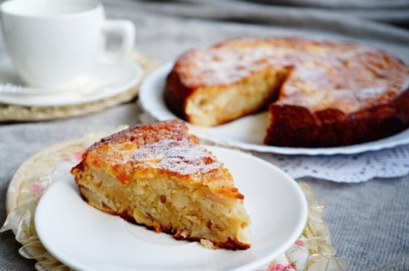 Яблочный пирог на основе ряженки получается одинаково вкусным и в теплом, и в охлажденном виде.