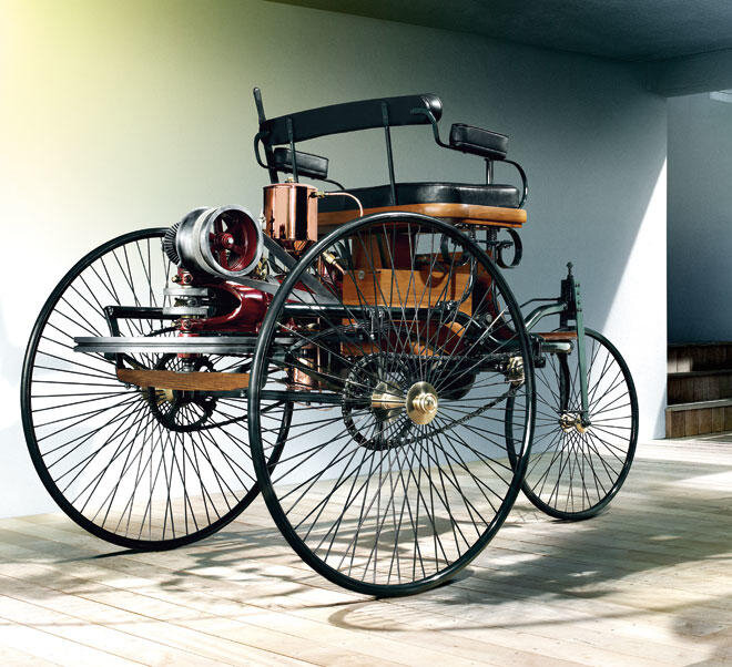 Автомобиль давно стал атрибутом повседневной жизни. Ежедневно мировыми концернами выпускается 200 тысяч машин. Но 1,5 века назад самоходное транспортное средство было диковинкой. Первый прототип современного автомобиля сконструирован знаменитым инженером из Германии Карлом Бенцем. Знаменательное событие произошло в 1885 году. Изобретение получило название «Benz Patent-Motorwagen». Выпуск продолжался 8 лет. Детище Бенца напоминало скорее легкую бричку, в которую запрягают лошадь. У транспортного средства отсутствовали крыша и двери. Автомобиль стоял на трех колесах, похожих на велосипедные: В движение новое средство передвижения приводил четырехтактный двигатель внутреннего сгорания с одним цилиндром. Рабочий объем — 950 куб. см, а мощность меньше одной лошадиной силы. Двигатель много весил — неполные 100 килограмм. Но в ту пору ничего компактней и легче еще не было придумано. Над задней осью двигатель крепился горизонтально и вращал ее с помощью 3-х передач. Ниже располагался маховик