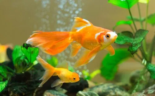 Описание Золотая рыбка (лат. Carassius auratus) — вид пресноводных лучепёрых рыб рода карасей. Золотая рыбка является одной из самых популярных аквариумных рыб. Основной окрас плавников и тела красно-золотистый, брюшко светлее тела. Иные разновидности окраса: красная, бледно-розовая, белая, огненно-красная, черная, желтая, черно-голубая, темно-бронзовая. Тело золотой рыбки удлиненной формы сжатое слегка с боков. Продолжительность жизни Короткотелые рыбки могут прожить 15 лет, длиннотелые же формы могут дожить до 40 лет. Но к 8 годам жизни они теряют способность размножаться. В специально оборудованных водоемах золотая рыбка может вырасти до 35 см (без хвоста), в аквариумах ее размеры обычно не превышают 15 см. Количество особей на аквариум берётся из расчёта 2-х кубических дециметров объёма на одну взрослую рыбу. Например, в 50 литровый аквариум с непрерывной продувкой воздухом может спокойно вмещать 7 рыбок. Возможно содержание с другими нехищными видами рыб, особенно с несклон