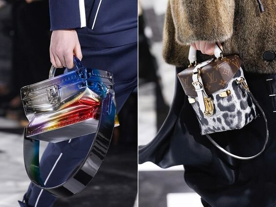 В наступившем сезоне популярность приобретают сумки жесткой формы и геометрических линий. Хороший пример тому – «чемодан», или «кофр» - квадратная, или прямоугольная сумка, отлично держащая форму. Самые модные модели – в виде сундука, декорированного кованными элементами. Расцветки могут быть как насыщенными однотонными, так и украшенными необычными ретро-узорами. Не менее актуальны лакированные «походные рюкзаки» с заклепками и объемные чемоданы с принтами, имитирующими кожу. Широкие ручки-ремешки делают такую сумку достаточно удобной в носке. Интересно смотрятся и мини-чемоданчики – их легко носить, но вместительность их практически нулевая.