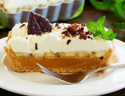 Проверьте, сколько минут уйдет у вас на приготовление. В нем сочетается несколько таких разных и гармонично дополняющих друг друга текстур, что я бы отнесла его к ресторанным десертам. А как эффектно он выглядит, правда? Белый, изысканный и нежный! Девочки, десерт настолько удобный в исполнении, давайте сделаем! Даже если вас не впечатлит состав продуктов, вы будете приятно удивлены вкусу, полученному от их сочетания. Уверена, вы настолько его полюбите, что станете готовить регулярно, а гости станут спрашивать рецепт. И теперь, встретив это название в меню, вы смело скажете, у меня он вкуснее получается! Название пошло от карамельной начинки и бананов: вanana и toffee = Banoffee. Рецепт, как и всё гениальное, оброс огромным количеством измененных копий до такой степени, что авторство до сих пор оспаривается. А придумали его англичане в 70-е годы 20 века, совсем недавно. Основа может быть выпечена из песочного теста, рецепт дам непременно чуть ниже. Но вариант из готового вашего любимо
