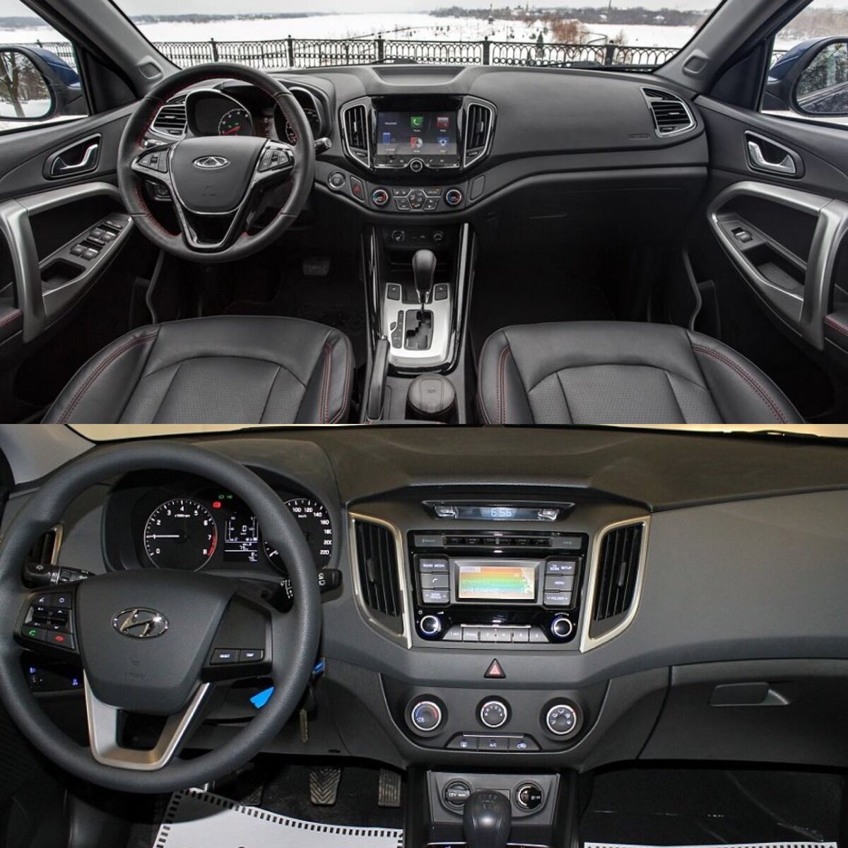 Во-первых, Hyundai Creta - самый продаваемый автомобиль в России, он обогнал даже Solaris. И не обратить на него внимания было сложно. Но и Tiggo 4 не отстаёт . Сравнение характеристик Creta в довольно интересной комплектации с передним приводом, объемом двигателя 2л, шести ступенчатый автомат и мощностью движка 149 л.с. Tiggo 4 удивил, турбо мотор 1,5 л, робот с двумя сцеплениями, передний привод и мощностью 147 л.с. Интерьер У Креты для удобства все есть, здесь нет смысла критиковать. А вот у Tiggo 4 приборные модель которая может управляться жестами.Smart браслет вместо всем привычных ключей , его преимущества: Багажники Крета лидирует в этом показателе- 402 л Колесная база- 2590мм. У Тигго же объём багажника 340 л Колесная база-2610мм. Сверху у Креты, Внизу у Тигго Сверху у Креты, Внизу у Тигго Город Не понимаю для чего Крете полный привод для города летом. Главный плюс-легкий руль. Хорошая обзорность и расход топлива- 8,6. А у Тигго для турбомотора довольно маленький расход