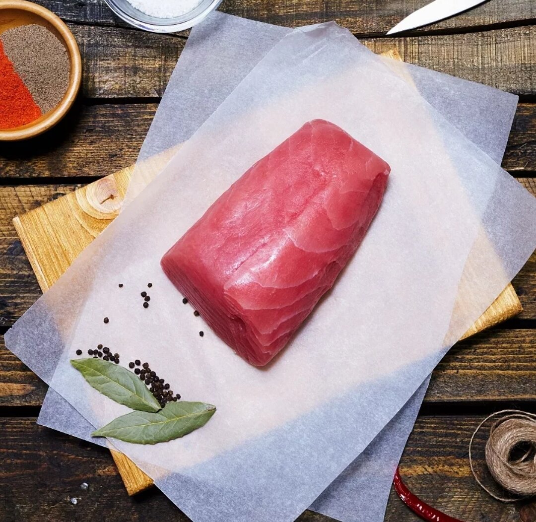 Слабосоленый тунец, невероятно нежная и вкусная рыбка.