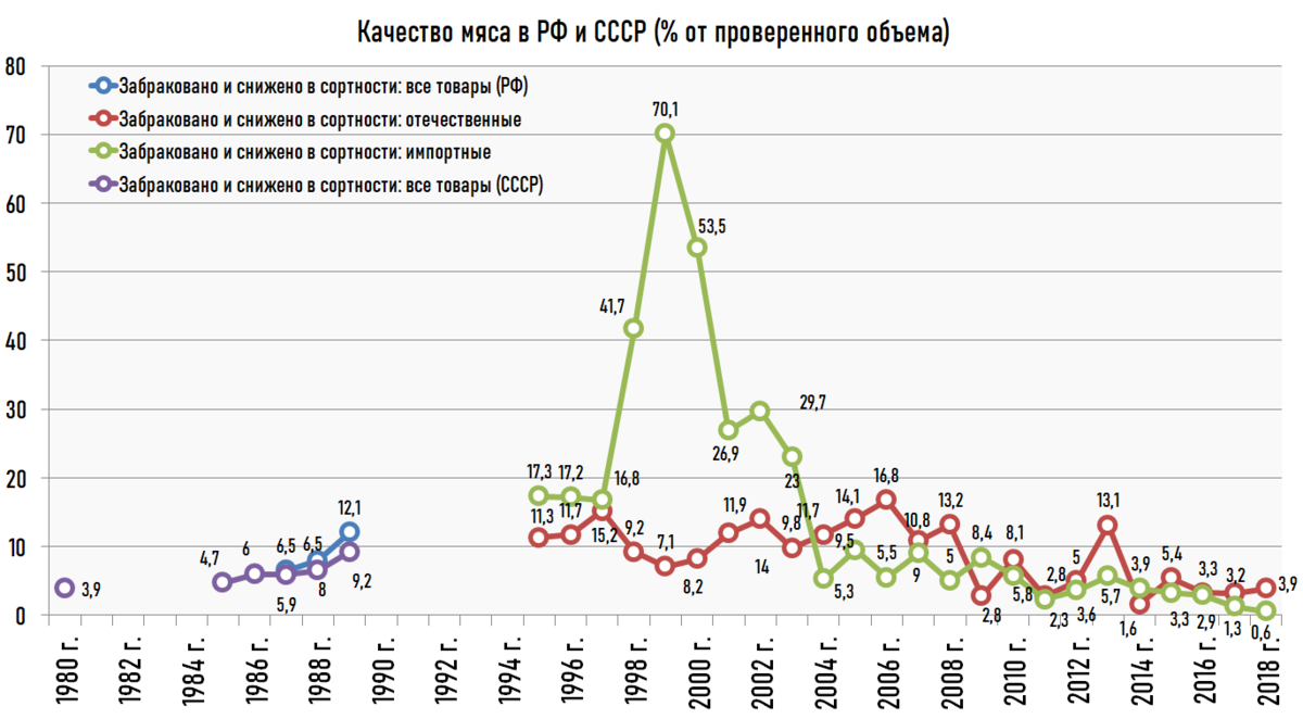 Забраковано (т.е. установлены ненадлежащее качество и (или) опасность товаров) и снижено в сортности продукции в процентах от проверенного объема, по результатам выборочных проверок госторгинспекциями системы Минторга РСФСР и СССР, Госкомтандарта, Департамента Госторгинспекции Минэкономразвития России и Роспотребнадзора в организациях торговли: Еще сложность поиска заключается в том, что содержание данного раздела все время менялось. В какой-то период (2003 и 2004) не публиковались данные о колбасе в С