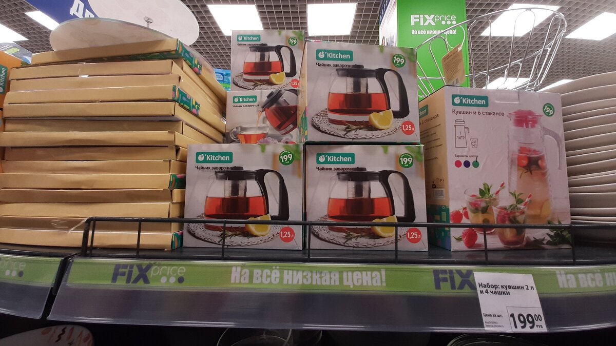 И опять на полочках Фикс Прайса появились заварочные чайники. За этот год это третий вид по моему. Цена чайника 199 руб.