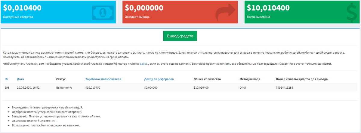 Важно: считаются только переходы с пройденной капчей + просмотры с компа дороже чем с телефона Вывод настроен. Например. можно вывести на киви.
